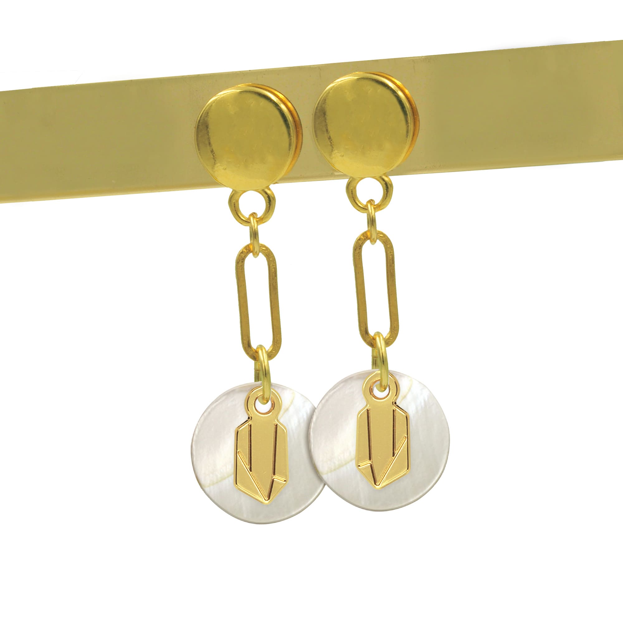 - Bijoux en laiton doré à l’or fin 24 carats ou habillé d’argent, accompagné d’une nacre naturelle émaillée