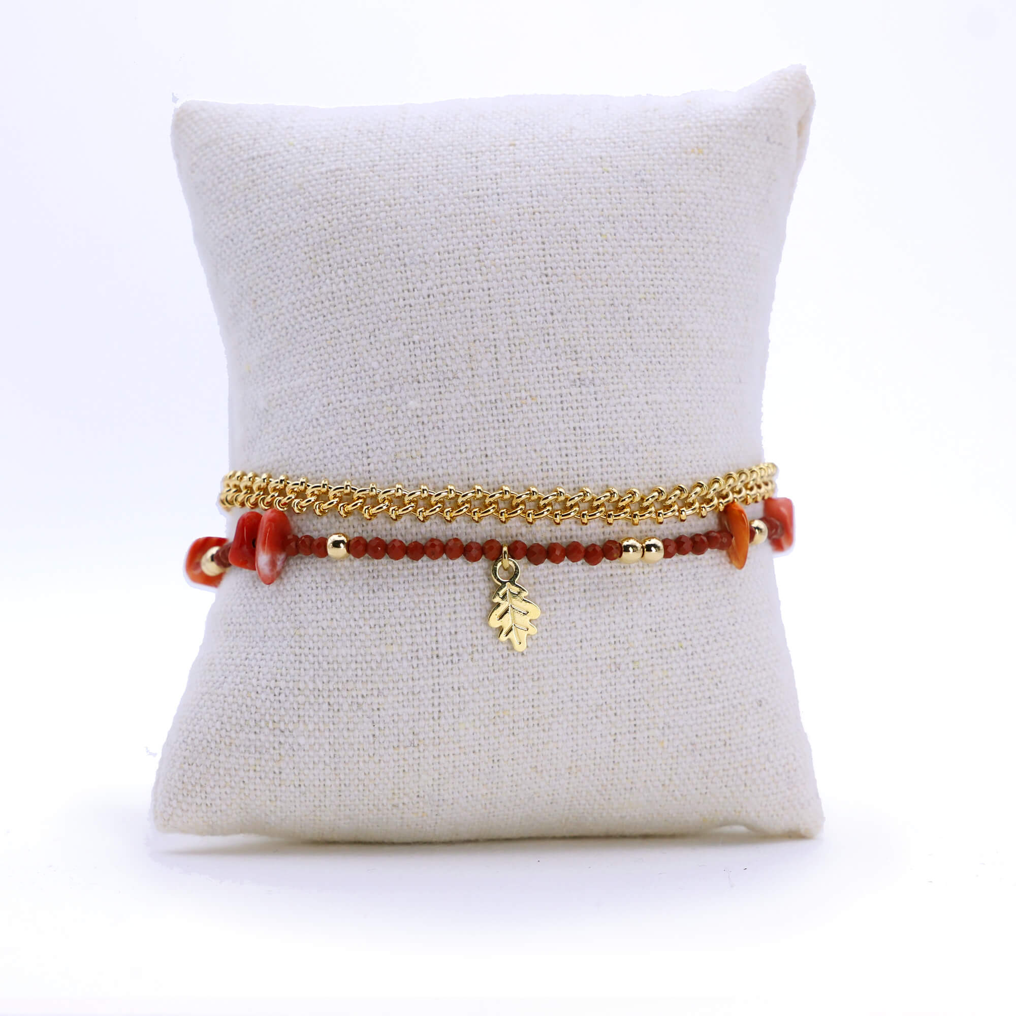 Bracelet double Alchimie : la jaspe rouge et la feuille de chêne