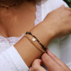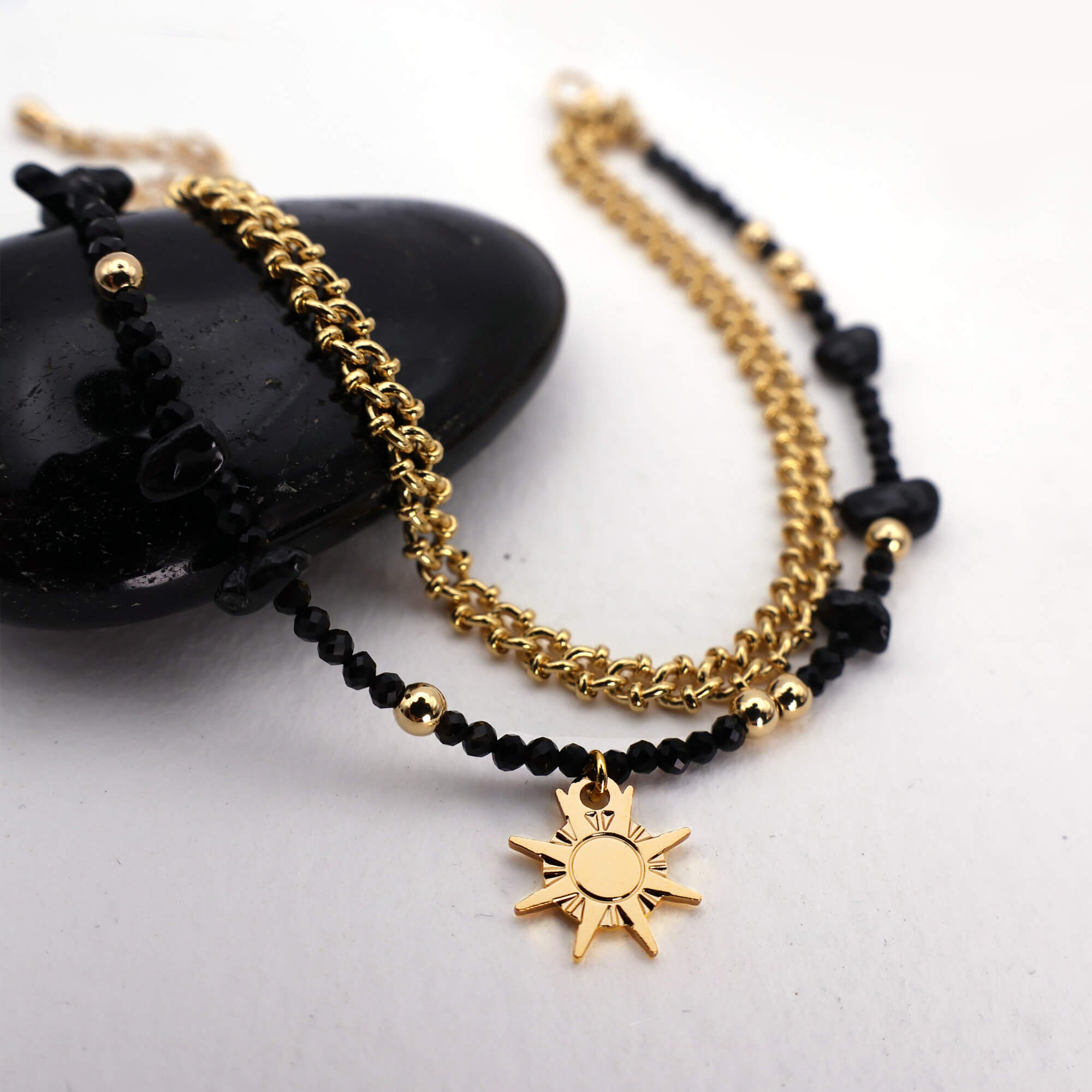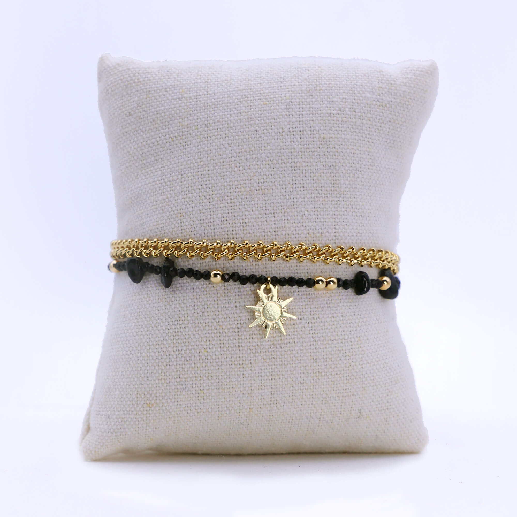 - Bracelet double en laiton doré à l’or fin 24 carats, accompagné de pierres fines naturelles de 2mm de diamètre
