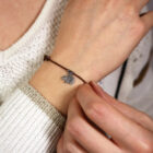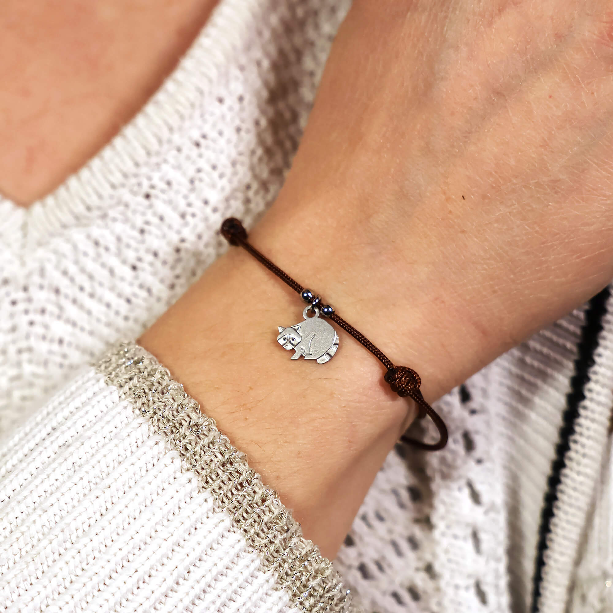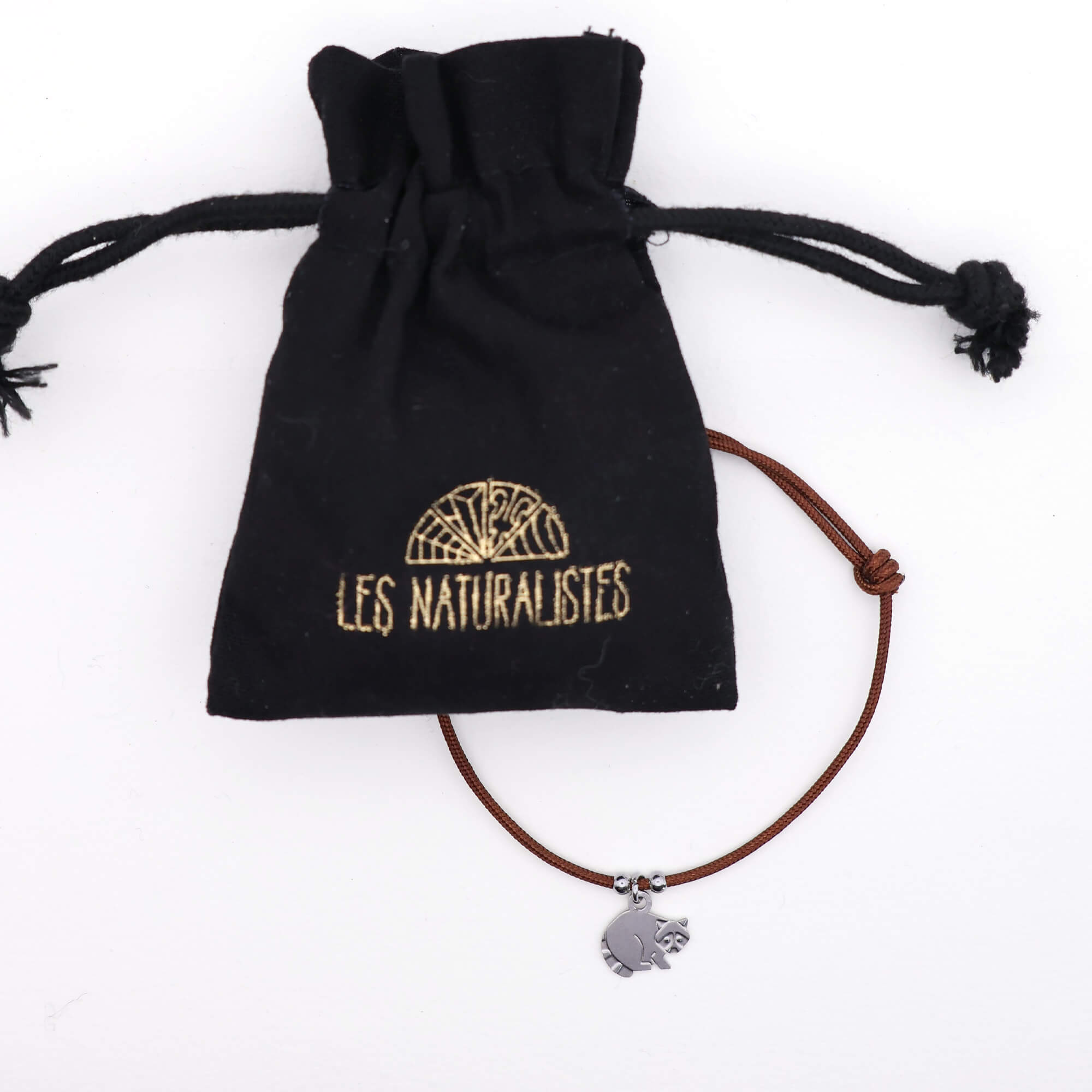 - Bracelet ajustable en nylon, avec une pampille et deux perles en acier inoxydable
