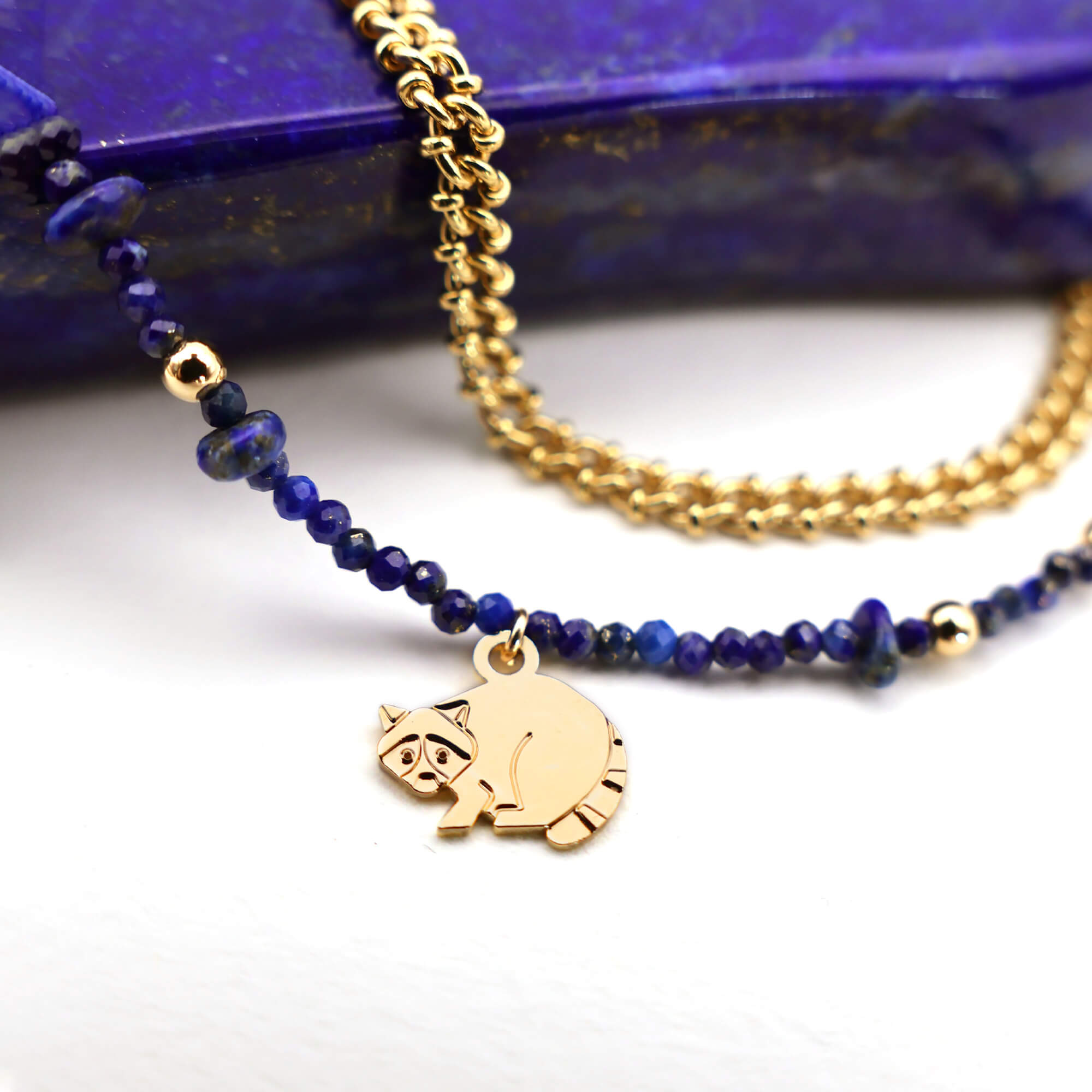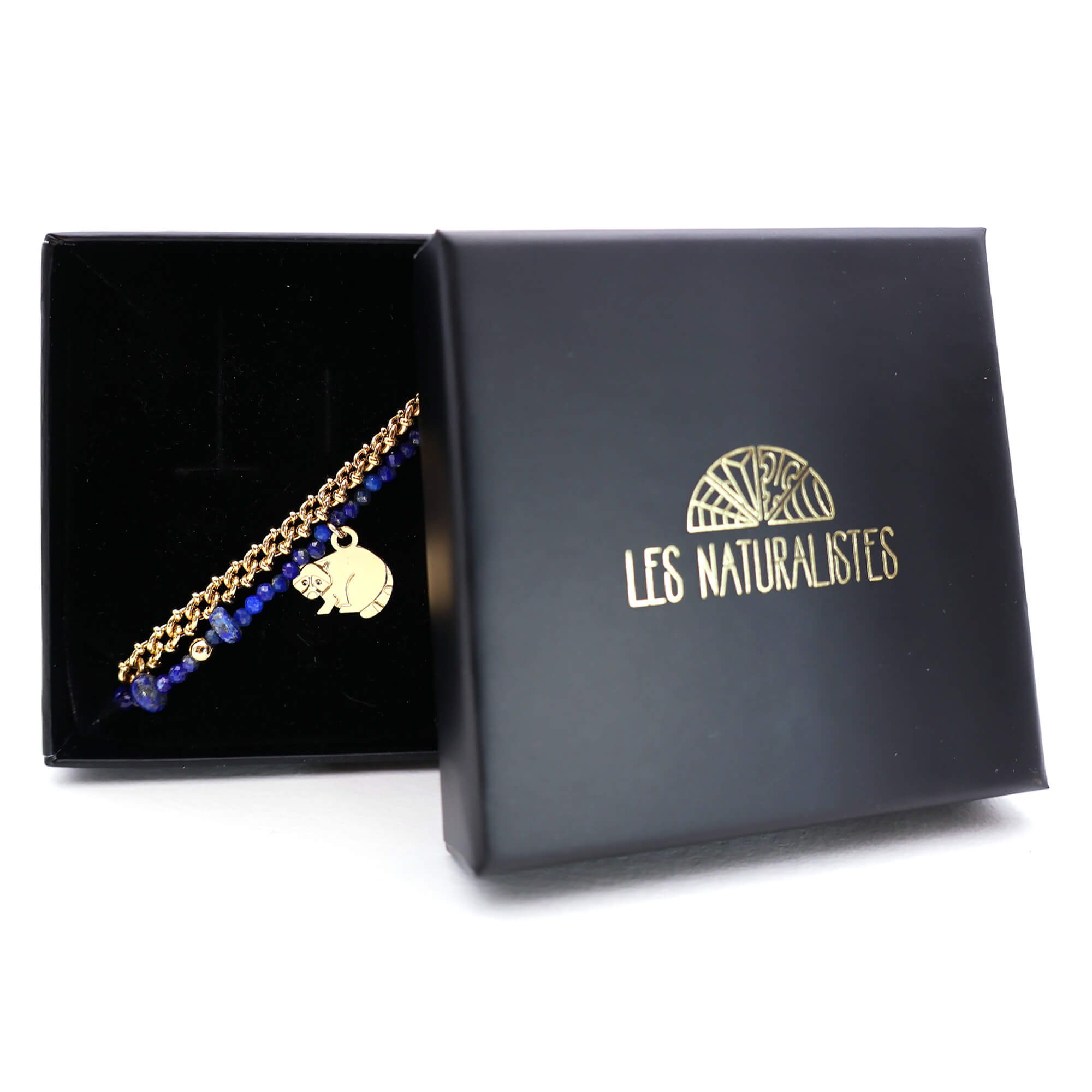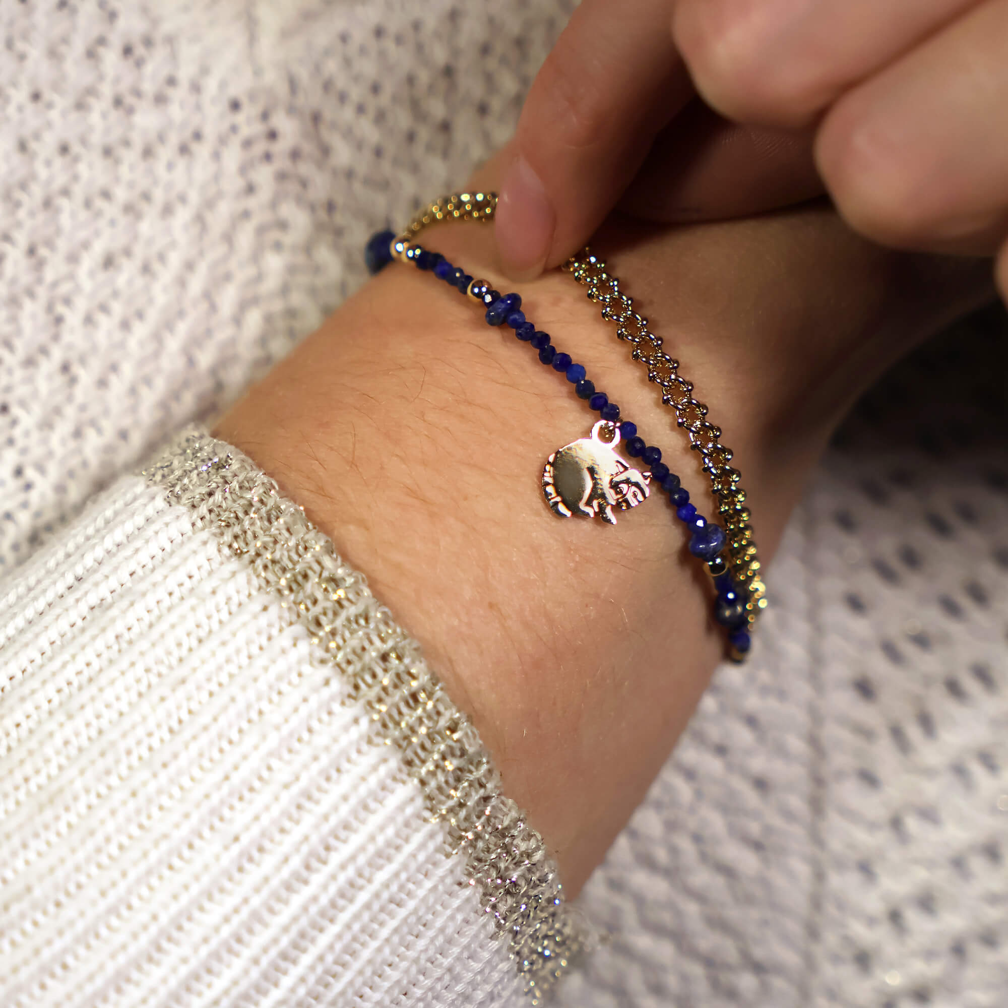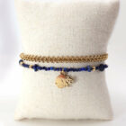 - Bracelet double en laiton doré à l’or fin 24 carats, accompagné de lapis-lazuli naturels de 2mm de diamètre