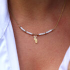 Chaque collier unit une pierre fine et une pampille symbolique, pour incarner un milieu naturel : océan, forêt, désert, glacier… Ces huit horizons racontent la diversité du vivant, entre force des éléments et poésie des symboles. À porter seul ou à cumuler avec un autre collier.