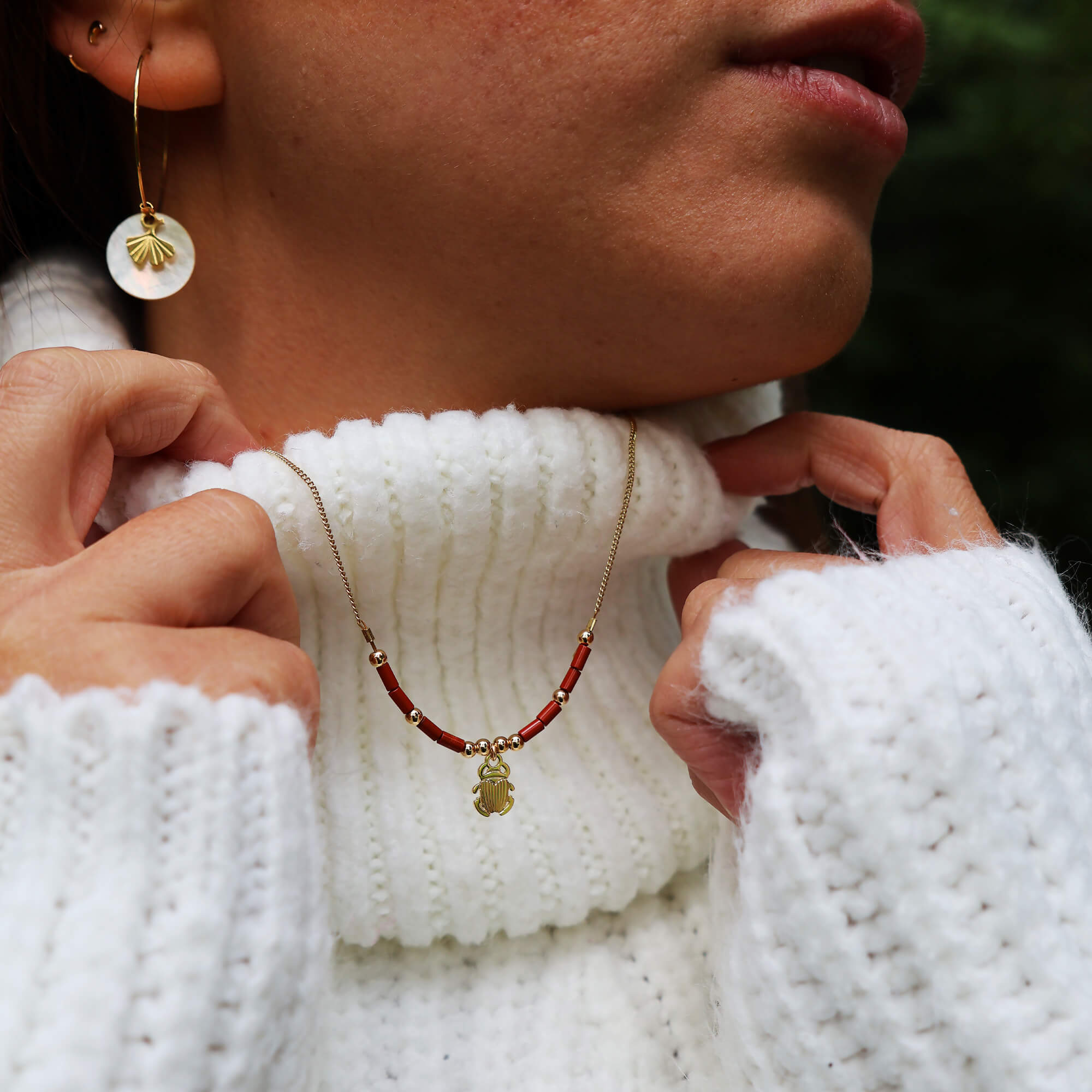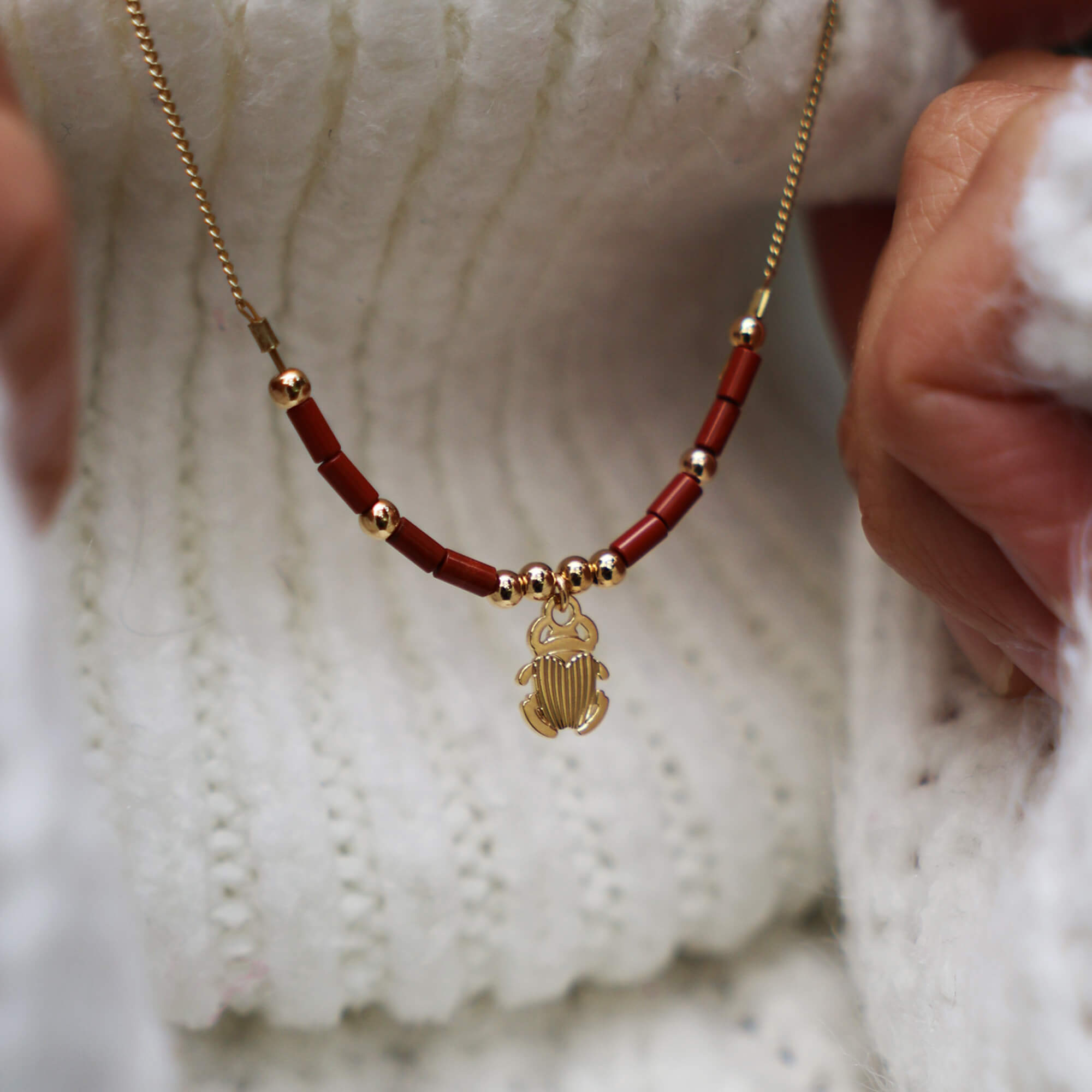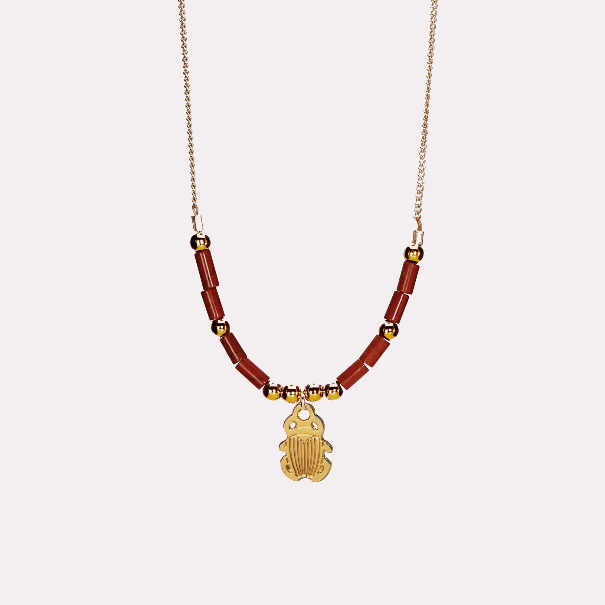 Talisman millénaire, le scarabée s’allie à la chaleur du jaspe rouge pour célébrer la force vitale des terres arides.