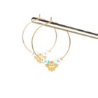- Créoles de 3 cm de diamètre et breloques en laiton doré à l’or fin, accompagnées de véritables pierres fines et de perles en laiton dorées à l’or fin