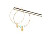 - Créoles de 3 cm de diamètre et breloques en laiton doré à l’or fin, accompagnées de véritables pierres fines et de perles en laiton dorées à l’or fin