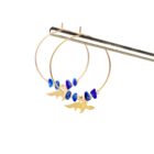 •  Créoles de 3 cm de diamètre et breloques en laiton doré à l’or fin, accompagnées de véritables pierres fines et de perles en laiton dorées à l’or fin