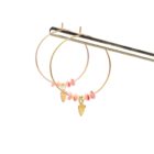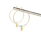 •  Créoles de 3 cm de diamètre et breloques en laiton doré à l’or fin, accompagnées de véritables pierres fines et de perles en laiton dorées à l’or fin