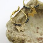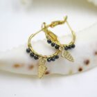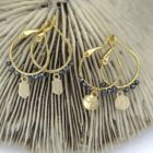 - Créoles de 1,8 cm de diamètre et breloques en laiton doré à l’or fin, accompagnées de véritables pierres fines
