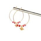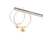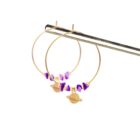 - Créoles de 3 cm de diamètre et breloques en laiton doré à l’or fin, accompagnées de véritables pierres fines et de perles en laiton dorées à l’or fin