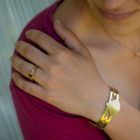 Lorsque vous ne portez pas votre bijou, afin de préserver ses fines dorures, déposez-le dans son coffret à l’abri de la lumière et de l’humidité.