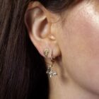 •  Créoles en laiton dorées à l’or fin ou recouvertes d’argent de 1,2 cm de diamètre et breloques en laiton doré à l’or fin
