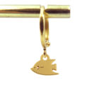 - Créoles en laiton dorées à l’or fin ou recouvertes d’argent de 1,2 cm de diamètre et breloques en laiton doré à l’or fin