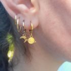 •  Créoles en laiton dorées à l’or fin ou recouvertes d’argent de 1,2 cm de diamètre et breloques en laiton doré à l’or fin